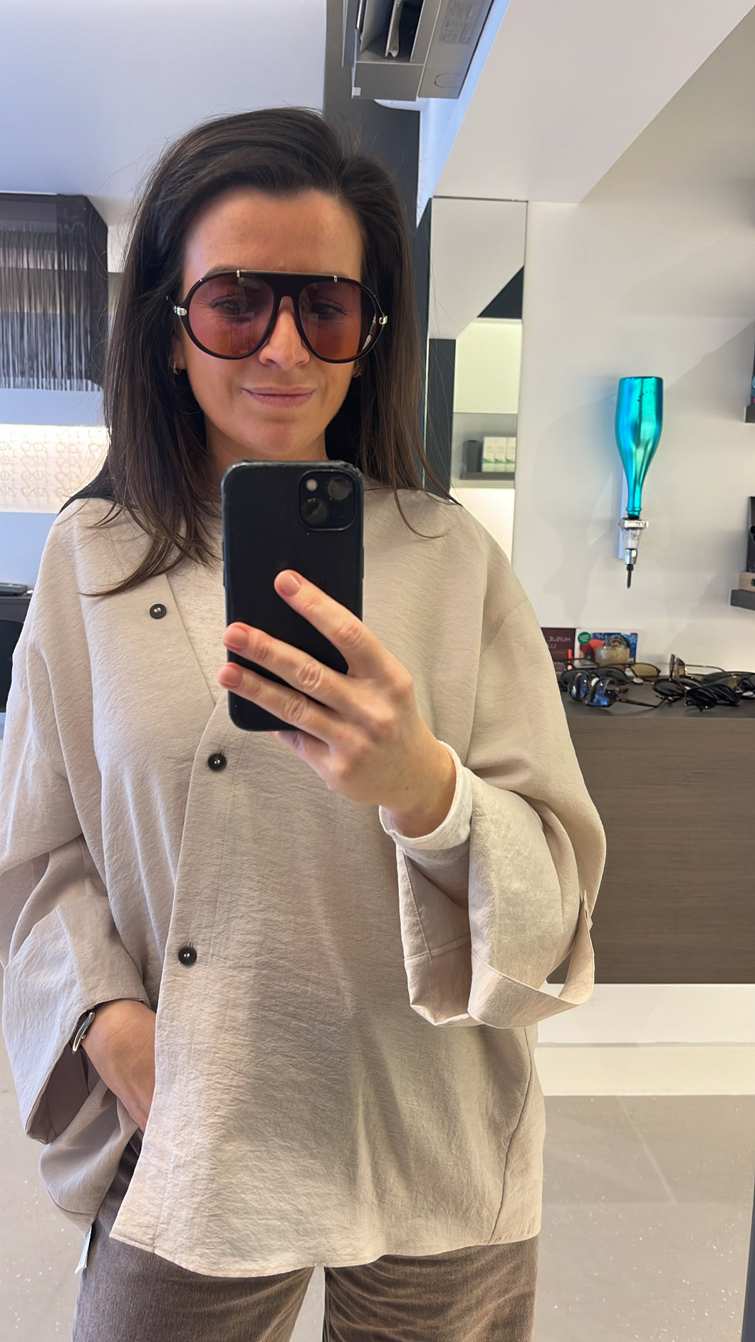 Oversized masculine shape. Combi construction featuring an acetate frame enhanced by a metal top bar and lightweight metal temples.